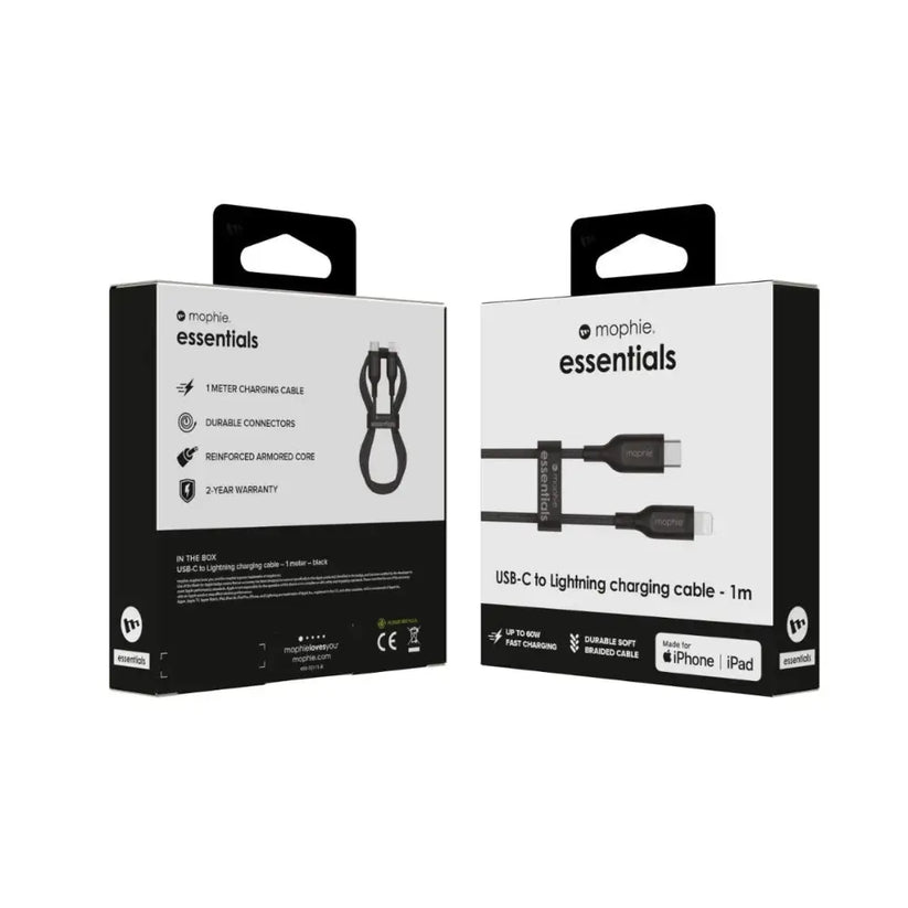 Cable Mophie essential trenzado USB-C a Lightning 60w 1m - Negro | iShop Perú
